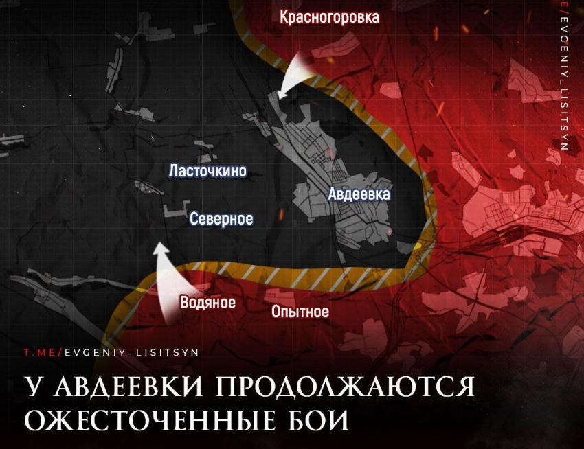 Военкор Евгений Лисицын опубликовал в своем Telegram-канале актуальную карту боевых действий, которая свидетельствуют о продолжении активной фазы боевых действий на Авдеевском направлении.