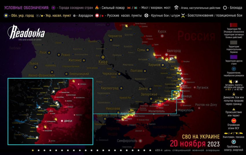 Карта боевых действий в зоне военной спецоперации на Украине по состоянию на 06:00 мск от 21 ноября