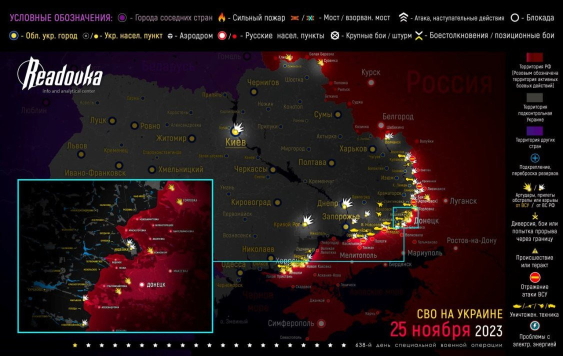 Карта боевых действий в зоне СВО на Украине по состоянию на сегодняшний день, 26 ноября