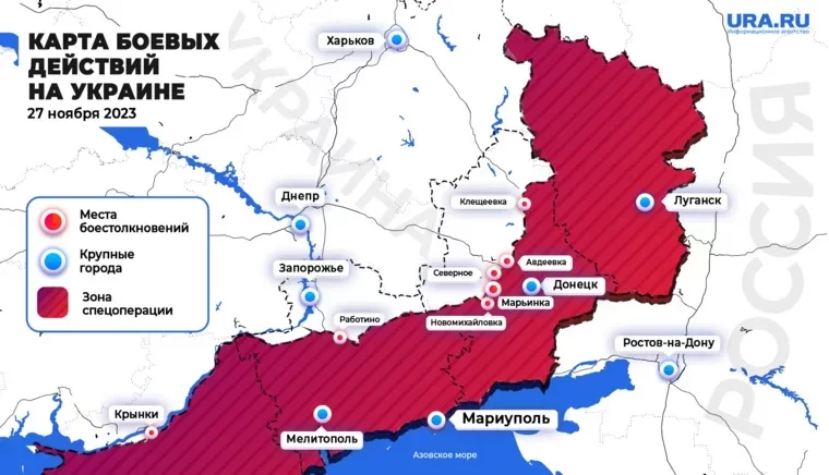 Обновлённая карта боевых действий на Украине от 27.11.2023 по состоянию на 13:00 мск