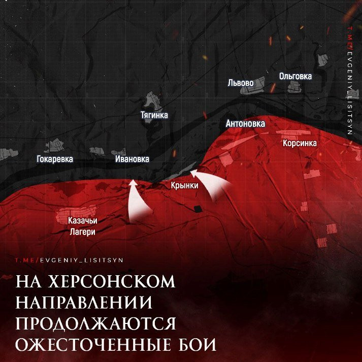 На Херсонско-Крымском направлении продолжаются встречные бои в Крынках. Ни одна из сторон не владеет инициативой. По украинским морпехам серьёзно работают средства дальнего поражения ВС РФ. Дроны и миномёты Вооружённых сил Украины (ВСУ) также создают серьёзную проблему для российских подразделений.