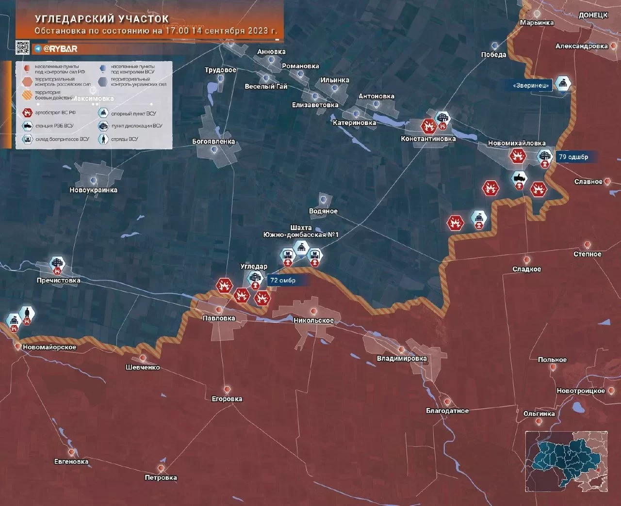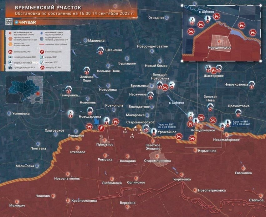 Карта боевых действий на Украине на сегодня, 15 сентября 2023 года