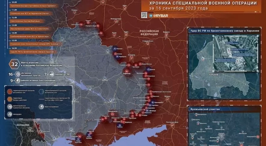 Карта боевых действий на Украине: данные от 17 сентября 2023 года