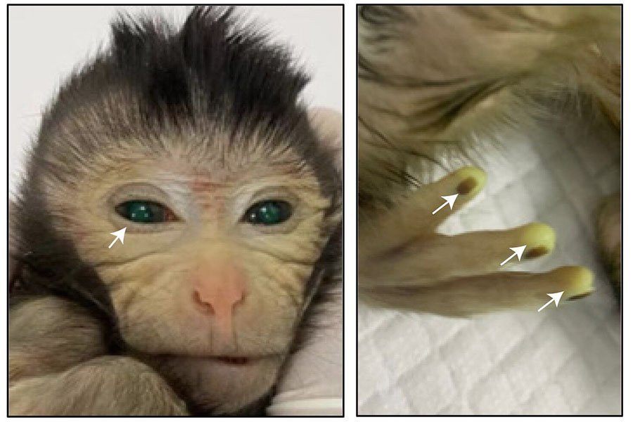 Из 12 беременностей и шести живорождений, которые произошли в результате, только одну обезьяну, родившуюся живой, и одну, у которой произошел выкидыш, можно было считать химерами, клетки которых возникли из флуоресцентных стволовых клеток, меченных зеленым цветом, по всему телу.