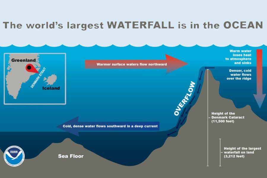 В глубинах Датского пролива, расположенного между Гренландией и Исландией, обнаружен самый высокий водопад на Земле - водопад Датского пролива. Научные исследования раскрывают удивительные параметры этого подводного чудовища, информирует сайт IFLScience (видео смотрите ниже).