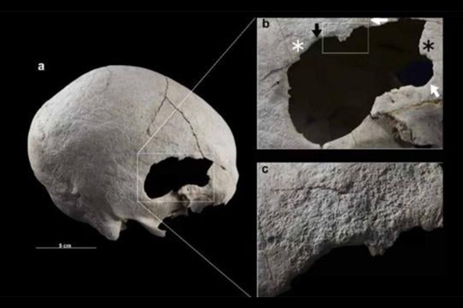 Основываясь на «наклонной ориентации стенок отверстий», исследователи пришли к выводу, что отверстия в черепе женщины были сделаны с использованием «техники соскабливания».