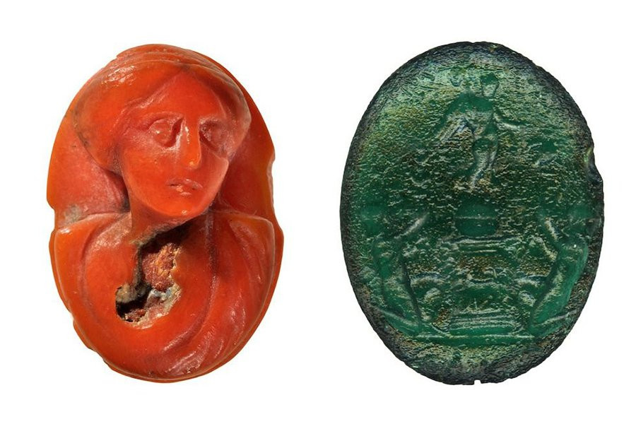 Археологи также раскопали десятки цветных драгоценных камней с выгравированными изображениями различных божеств и важных сооружений, в том числе того же театра.