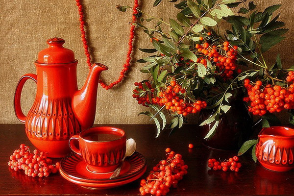 - если оставить гроздь рябины на столе, это сулит счастье в доме;